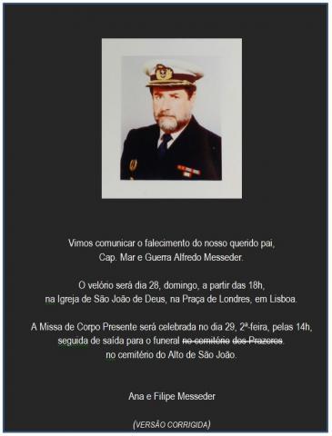 Faleceu o nosso associado Alfredo Messeder, Capitão de Mar e Guerra, que tanto nos acompanhou nas regatas e cruzeiros da ANC ao longo dos anos.