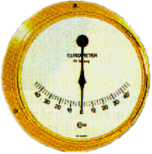 Tal como o nome quase nos sugere, serve para medirmos a inclinação transversal de uma embarcação. Existem inúmeros tipos de inclinómetros: com um simples pêndulo, ou de bolha semelhante a um nível de pedreiro (e com o mesmo princípio de funcionamento) e outros ainda embutidos numa bússola. É normalmente graduado em fracções de 5 graus numa escala até 45º. Alguns podem indicar mesmo os 90º com fracções de um grau.
